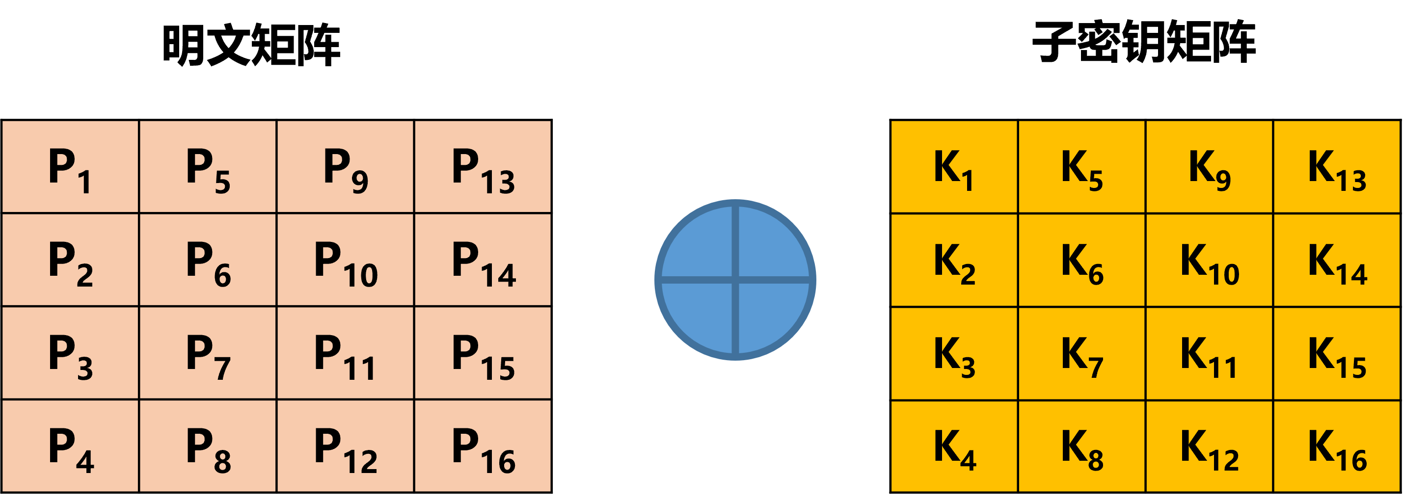 按字节将处理后的明文分组与当前轮次的密钥进行异或。它的逆也就是再异或一次轮密钥。
